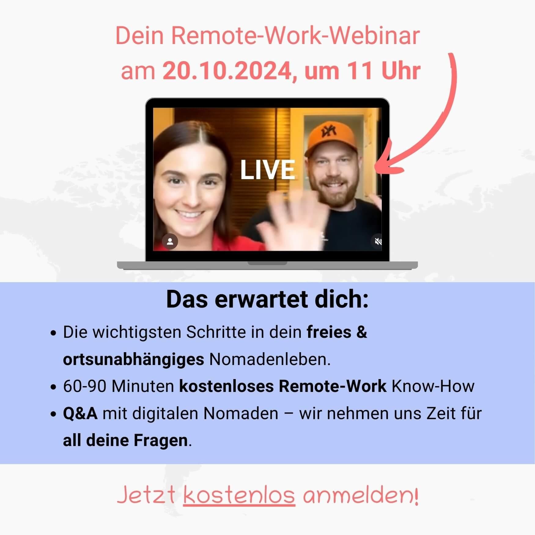 Wir werden euch dort erzählen, wie ihr euch ein ortsunabhängiges Leben aufbaut und das mit einem Remote-Job oder Freelancing, dass euch nicht nur Spaß machen wird, sondern euch auch erfüllt.