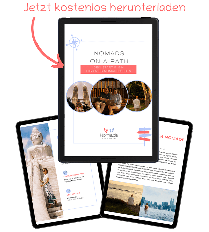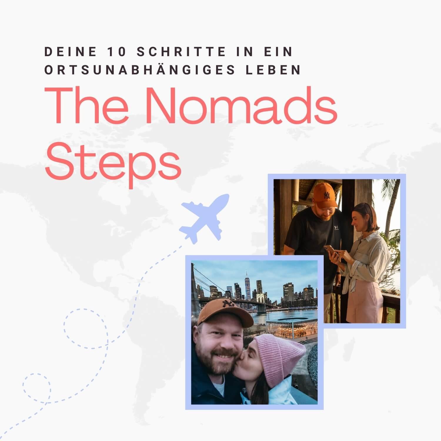 Mit „The Nomads Steps“ haben wir für dich ein Videotraining erstellt, dass dir zeigt, welche 10 Schritte du gehen musst, um dir ein ortsunabhängiges Leben aufzubauen. Dazu erhältst du kostenlose Extras im Wert von über 400 €: